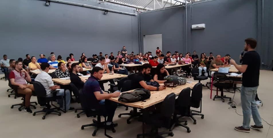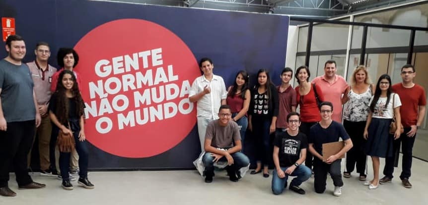DATA: 30/03/2019 - Os alunos da Escola de Inovadores e do Ensino Médio e Técnico da Etec de Ibitinga visitaram ONOVOLAB (espaço de coworking) na cidade de São Carlos. Em Araraquara, visitaram o Sebrae, onde foram recebidos pela Consultora de Marketing, Sra. Patrícia. Também em Araraquara, agora com os alunos da Fatec Matão, conheceram o Global Labs, espaço venture builder e hub de inovação.